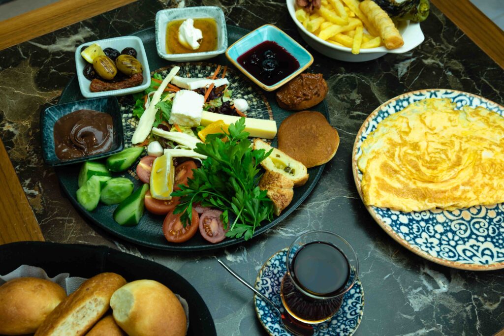 İçindekiler:Menemen, Omlet, Biber-Sucuk Kızartması, Börek Tabağı (Sigara Böreği, Patatesli Börek, Gözleme, Köz Biber, Sosis, Simit, Poğaça, Patates Kızartması), Yumurta Salatası, Tereyağı, Siyah Zeytin, Yeşil Zeytin, Bal, Kaymak, Acuka, Söğüş Tabağı, Böğürtlen Reçeli, Portakal Reçeli, İncir Reçeli, Tahin-Pekmez, Pancake Tabağı, Çikolata, Helva, Meyve Tabağı, Peynir Tabağı, Sınırsız Çay.